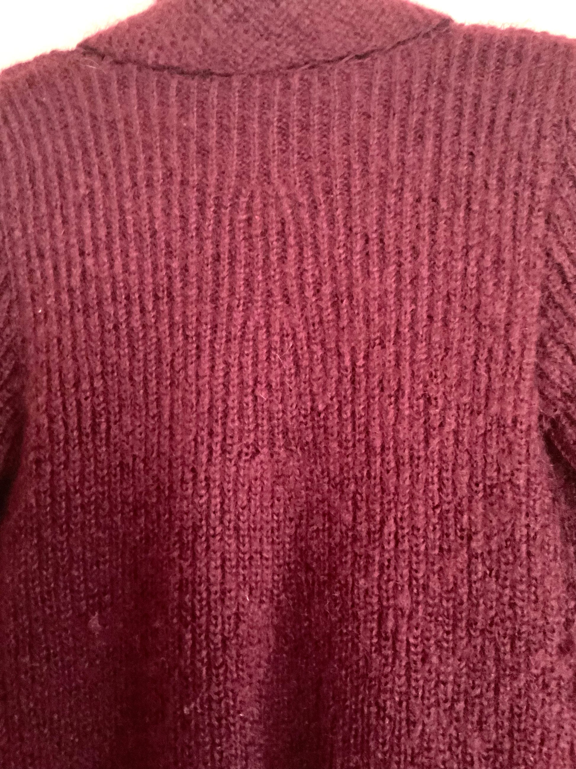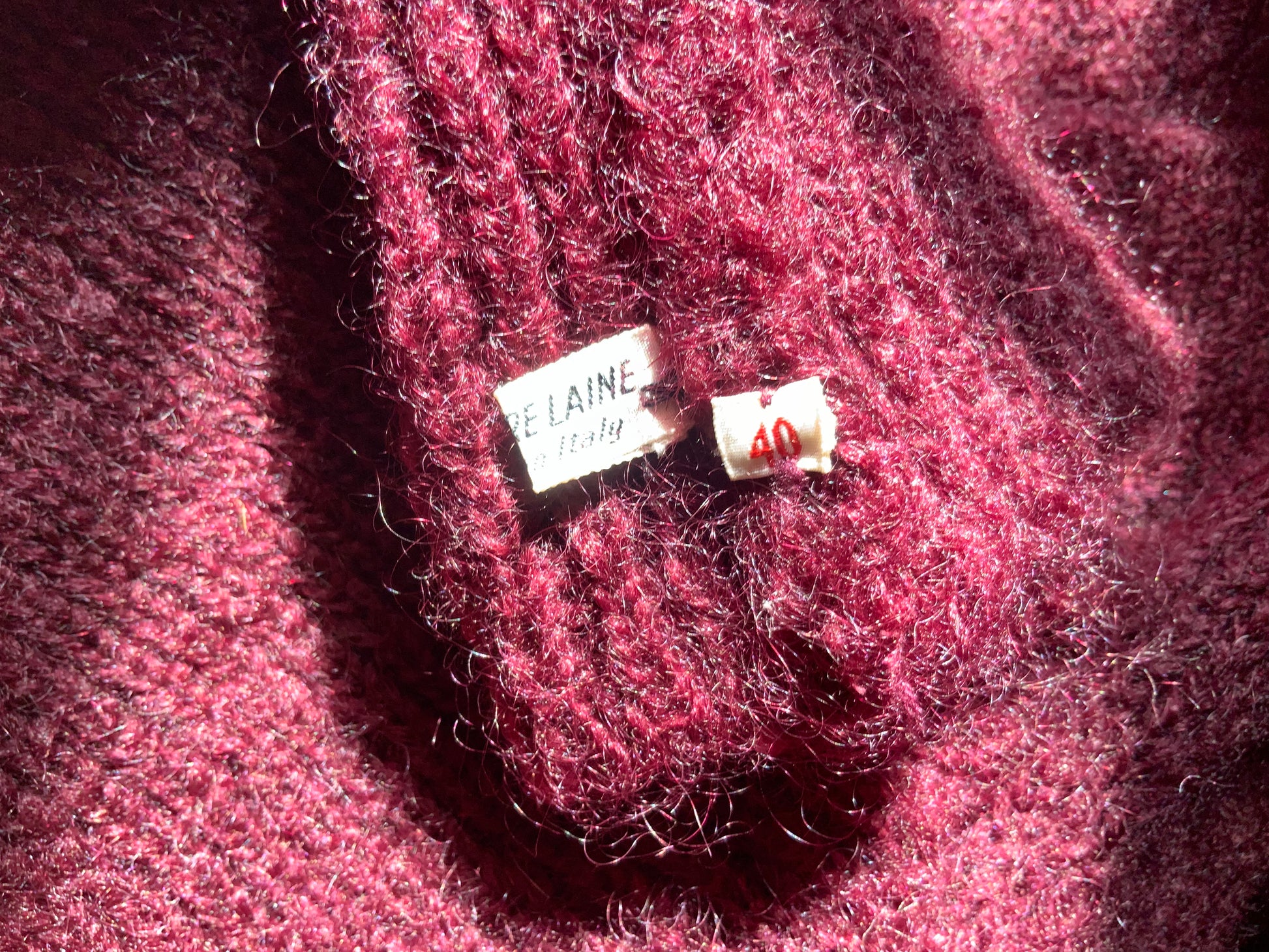 Gilet long en maille bordeaux , col écharpe , par Sonia Rykiel , la reine de la maille , vintage années 80.