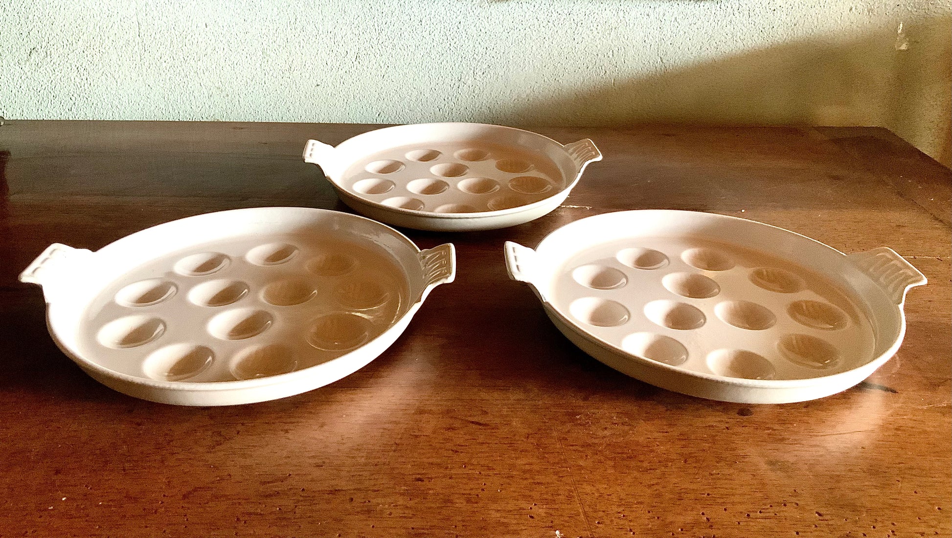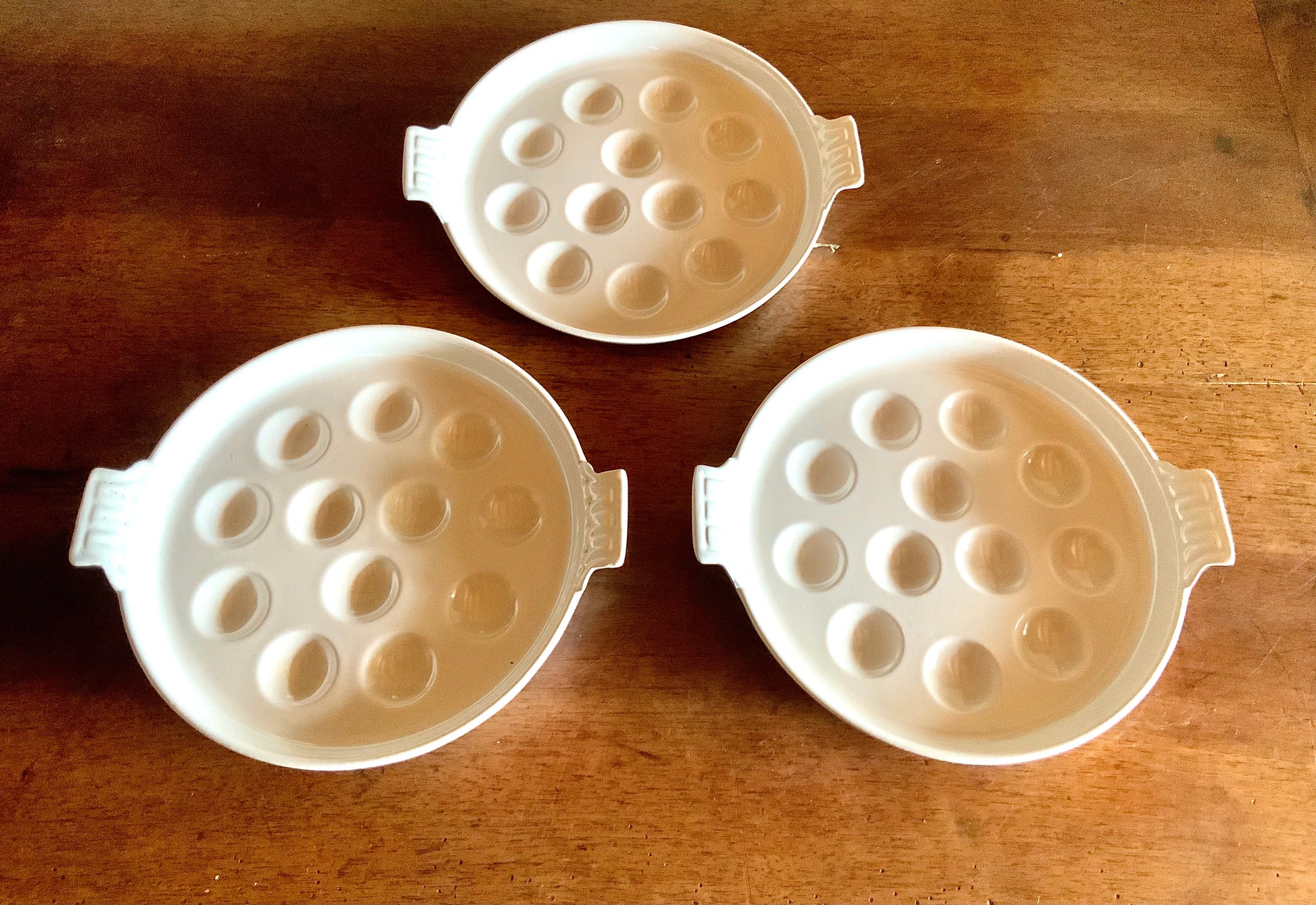 Ensemble de 3 assiettes à escargots Le Creuset Vintage .
