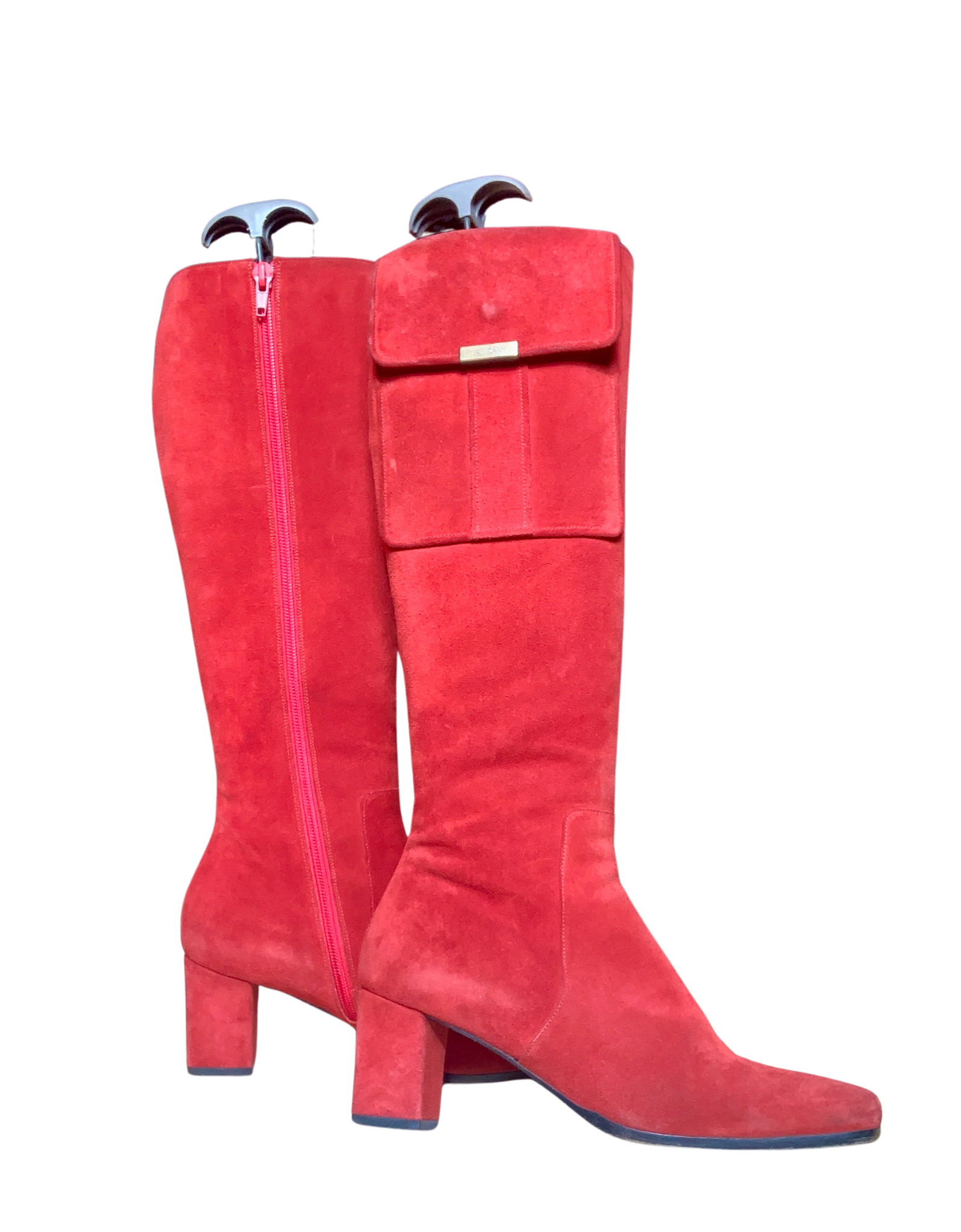 Bottes hautes en daim rouge Yves Saint Laurent vintage