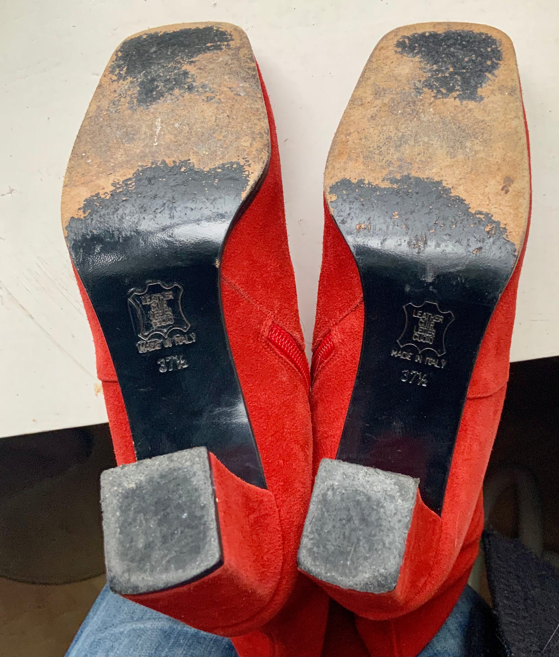 Vintage années 70 , pour ces magnifiques bottes hautes en daim rouge .