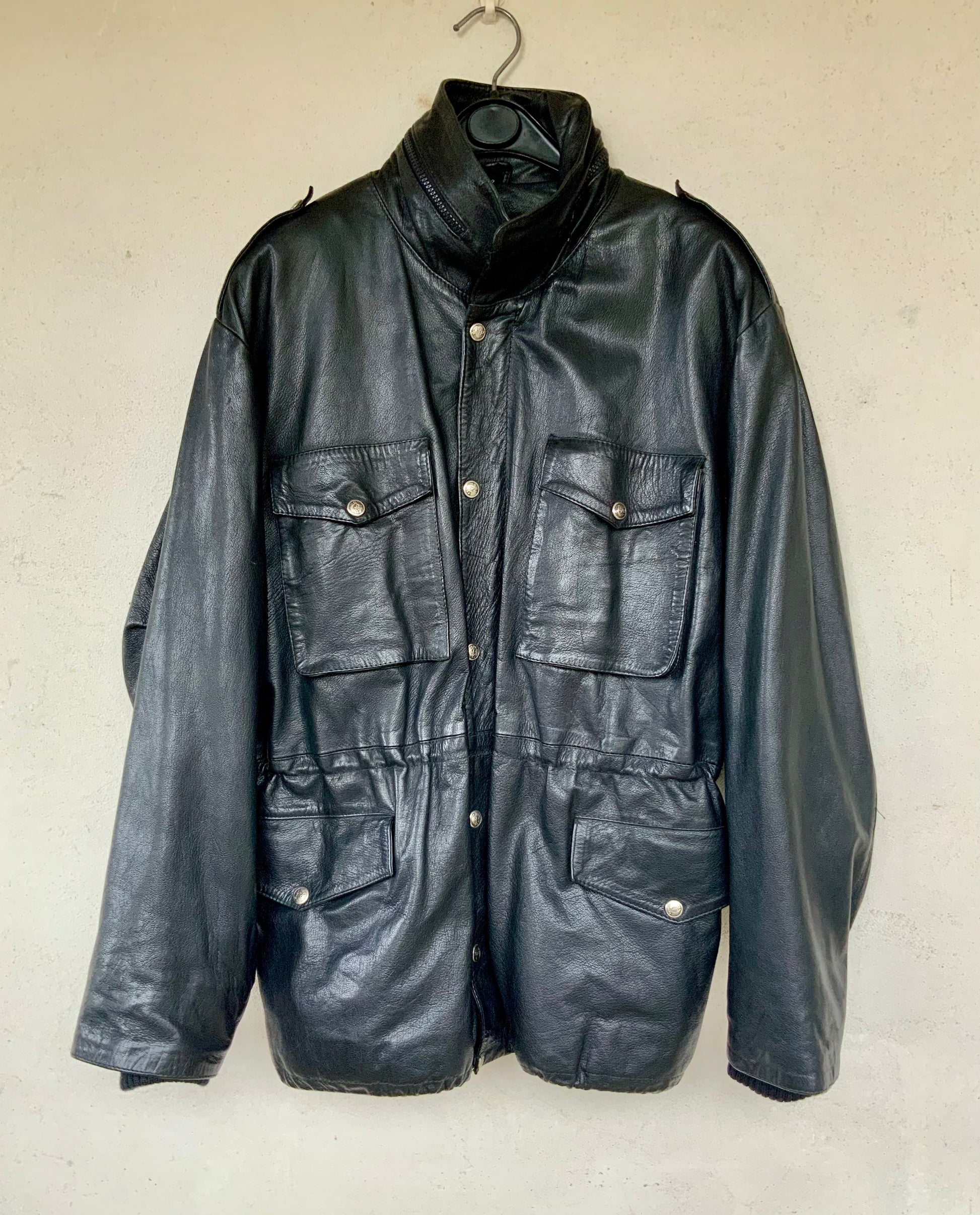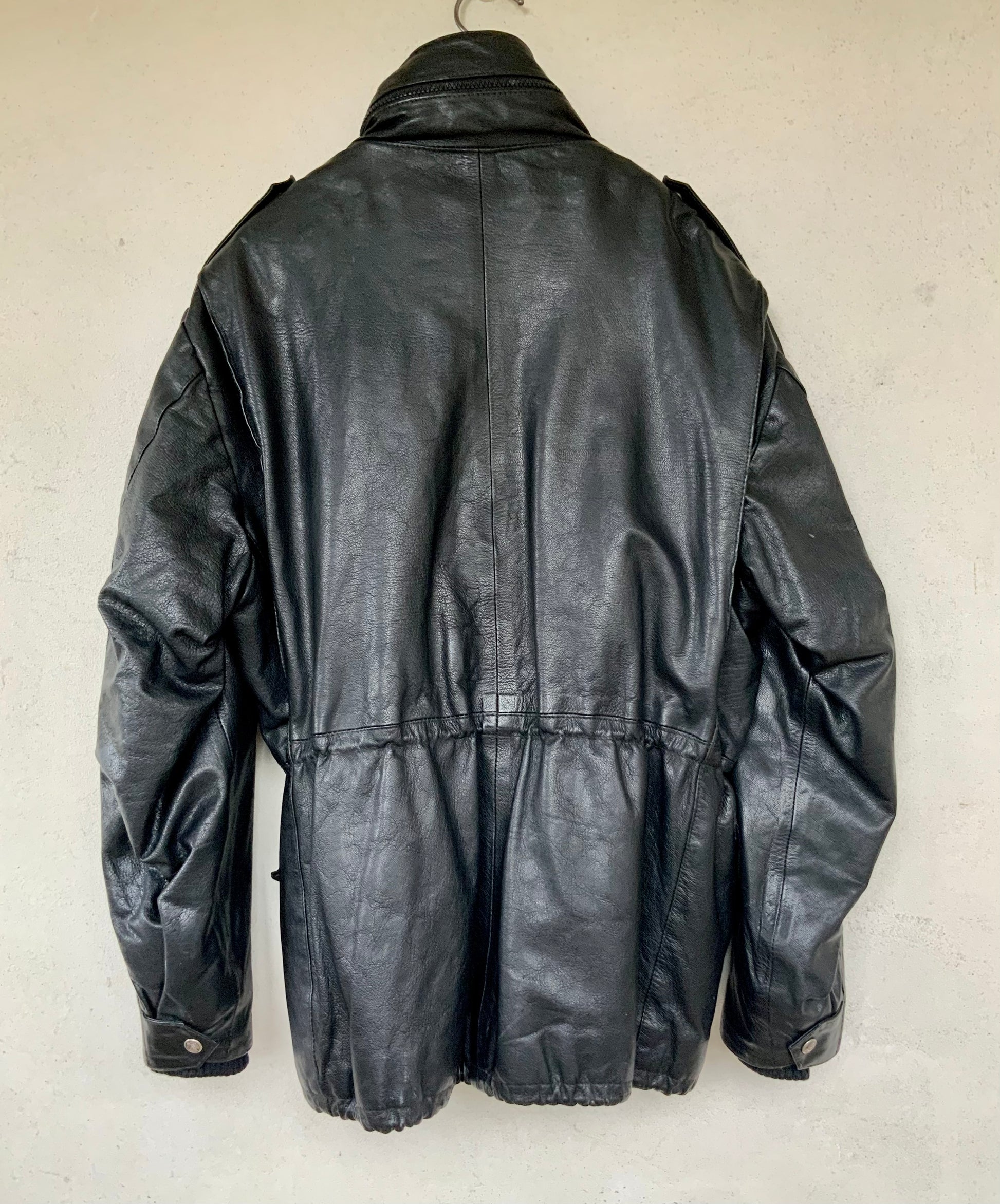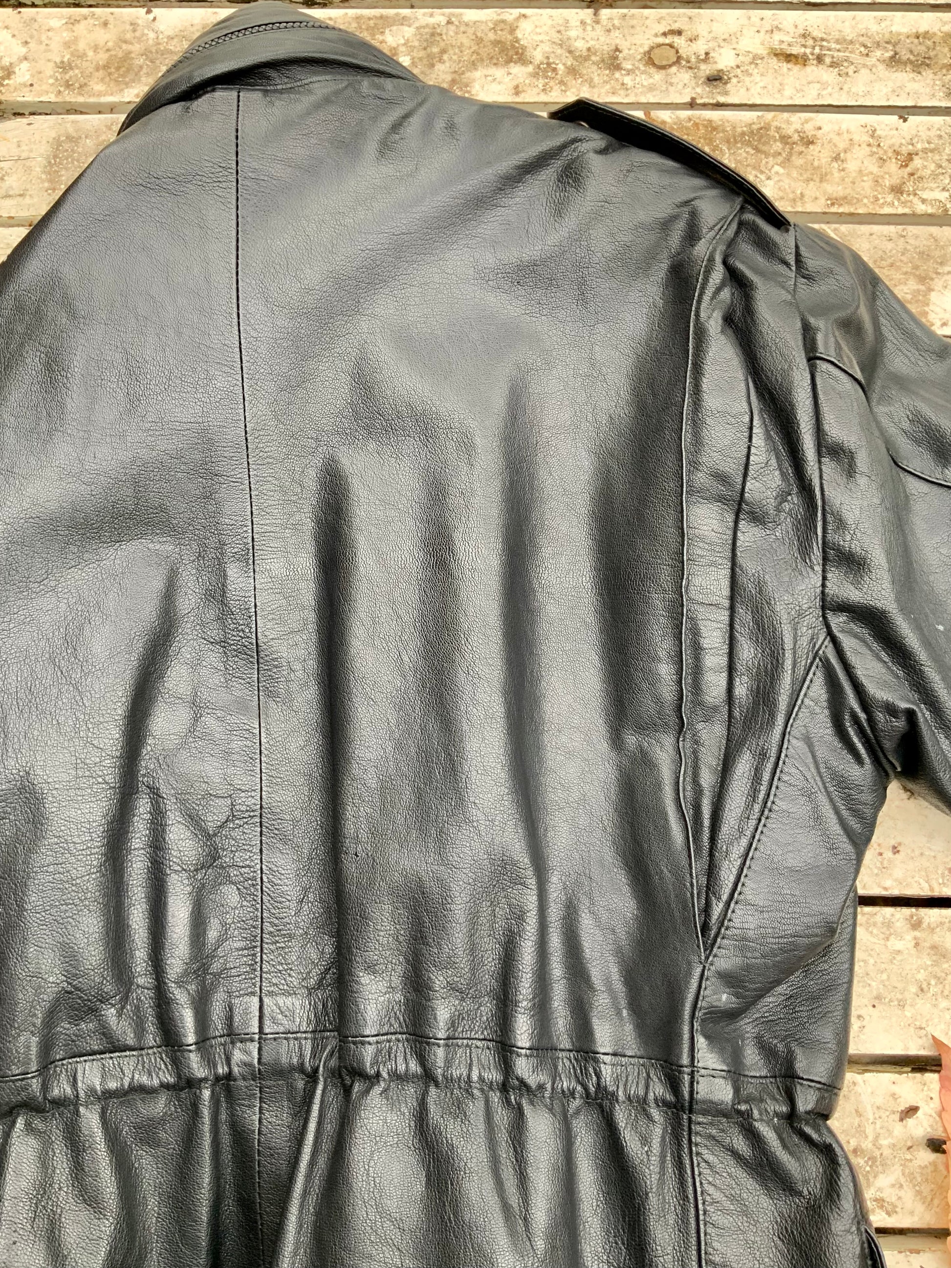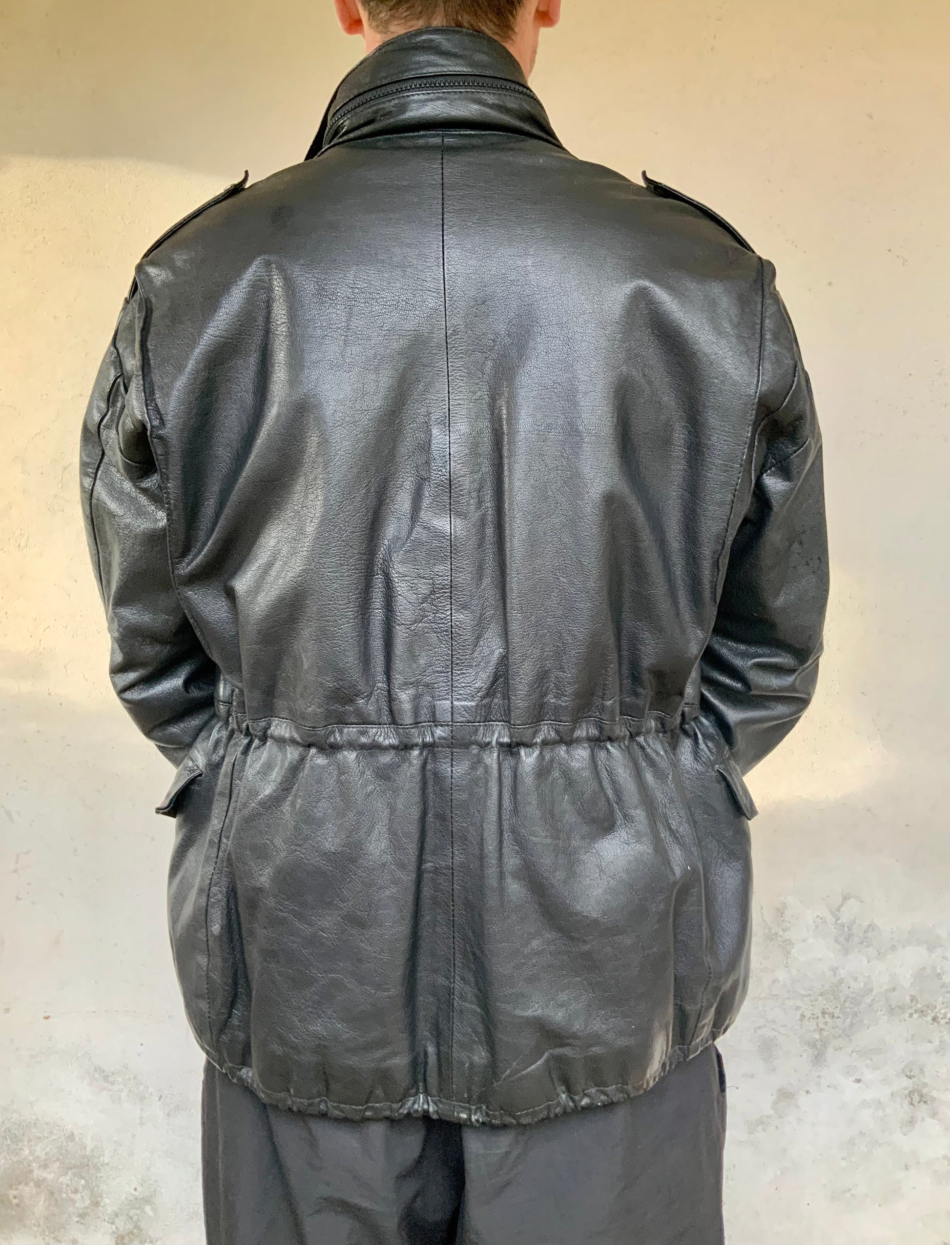 Parka en cuir noir dite Veste de combat par JAPA LE CUIR