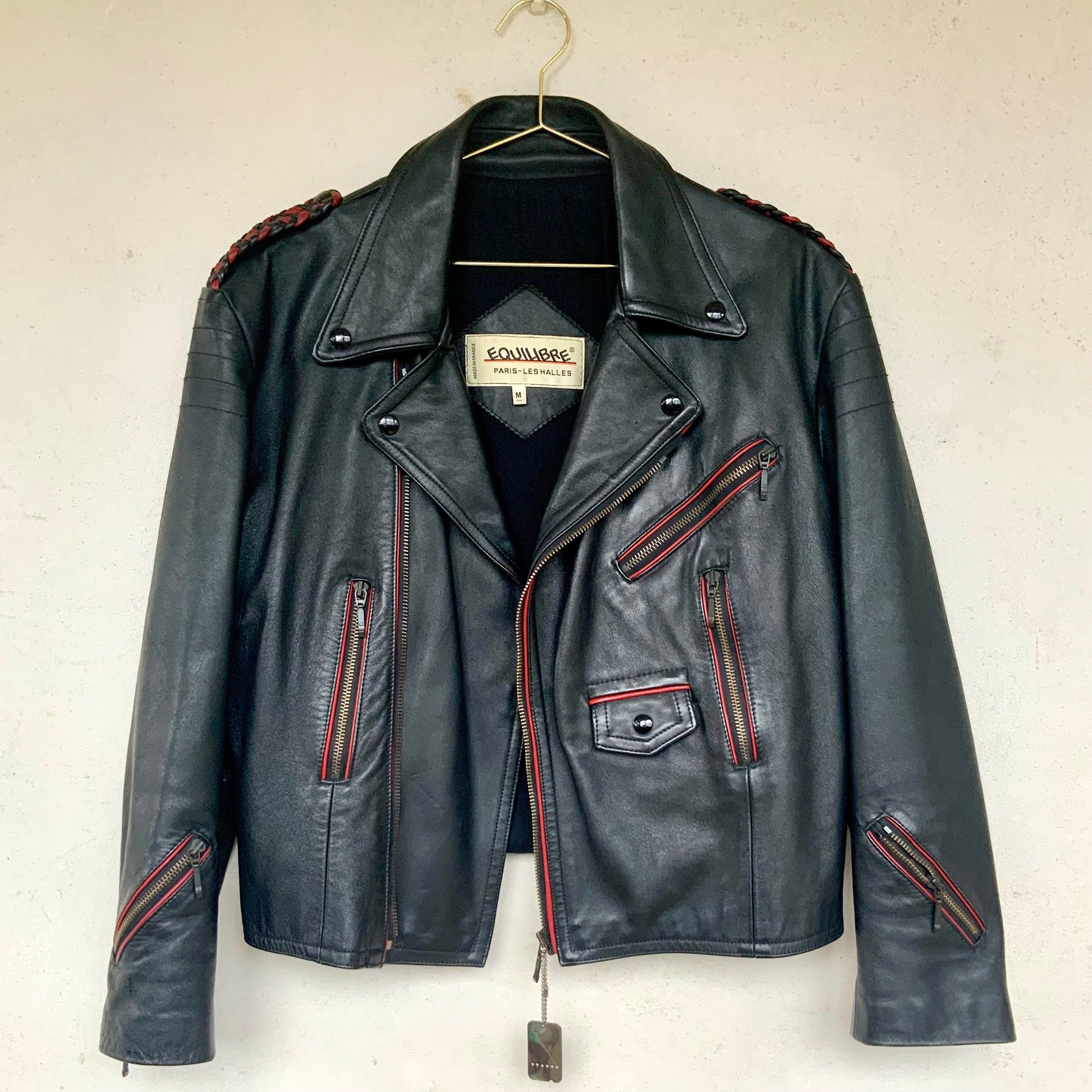 Perfecto en cuir noir et rouge ÉQUILIBRE vintage années 90