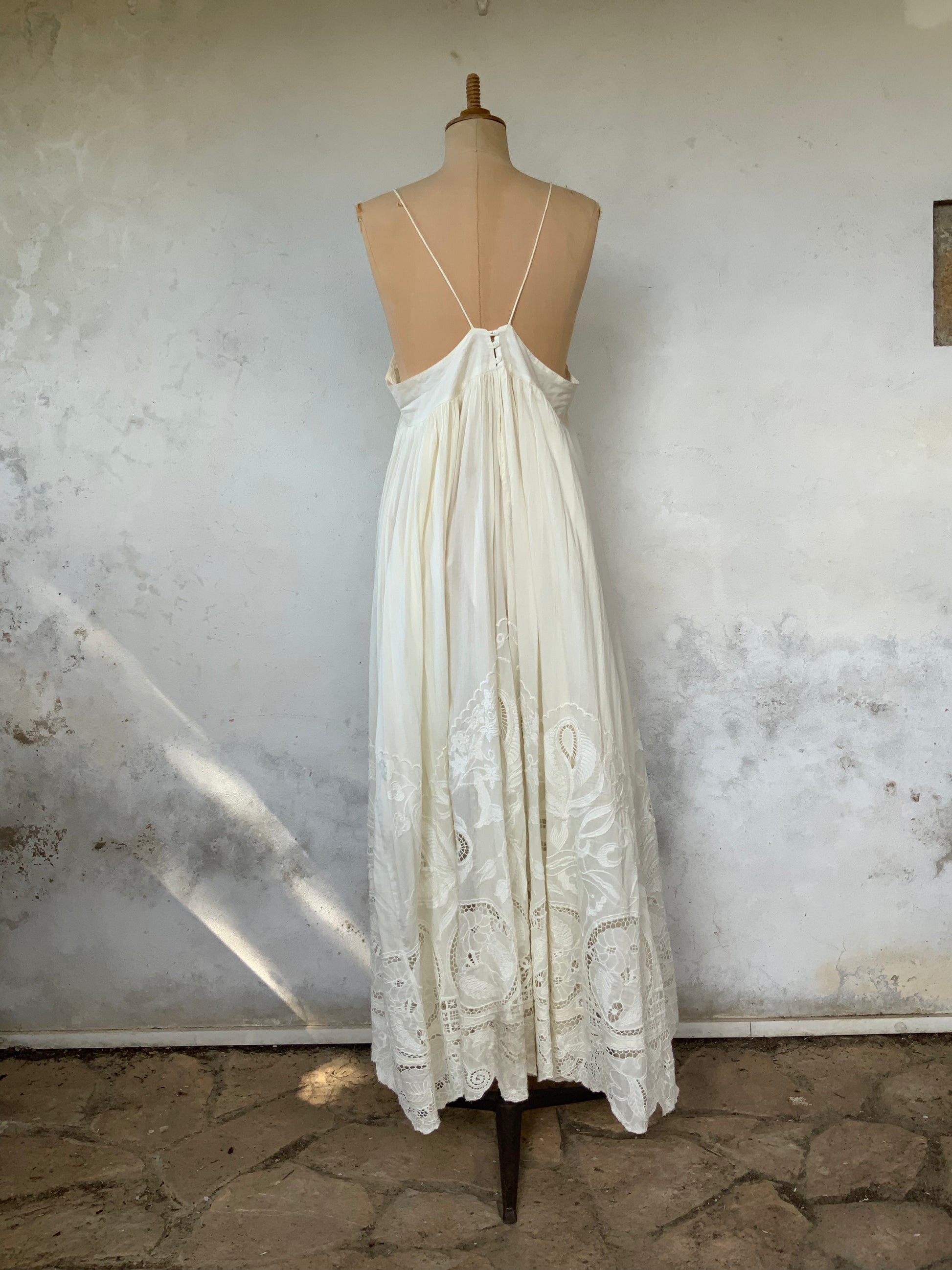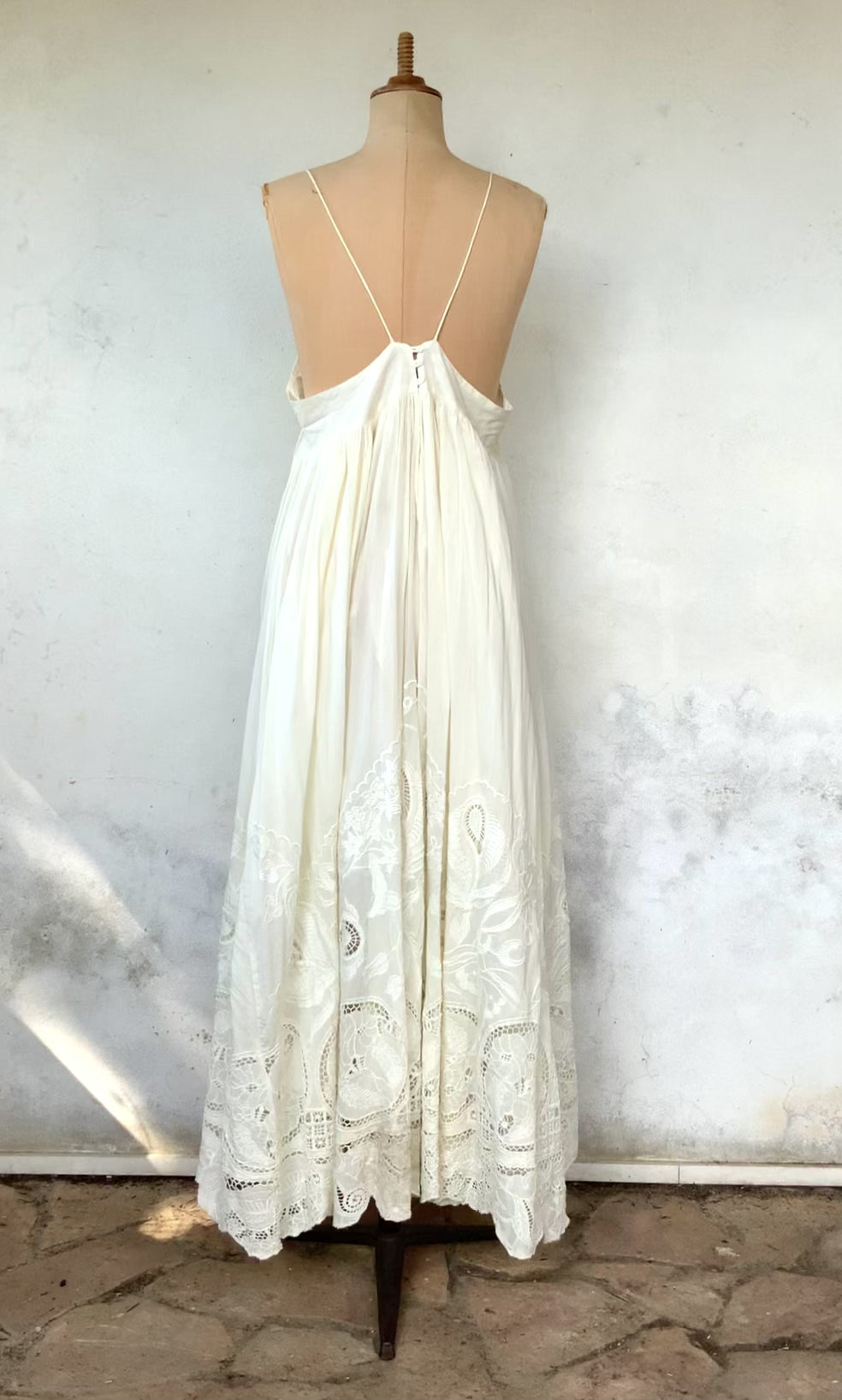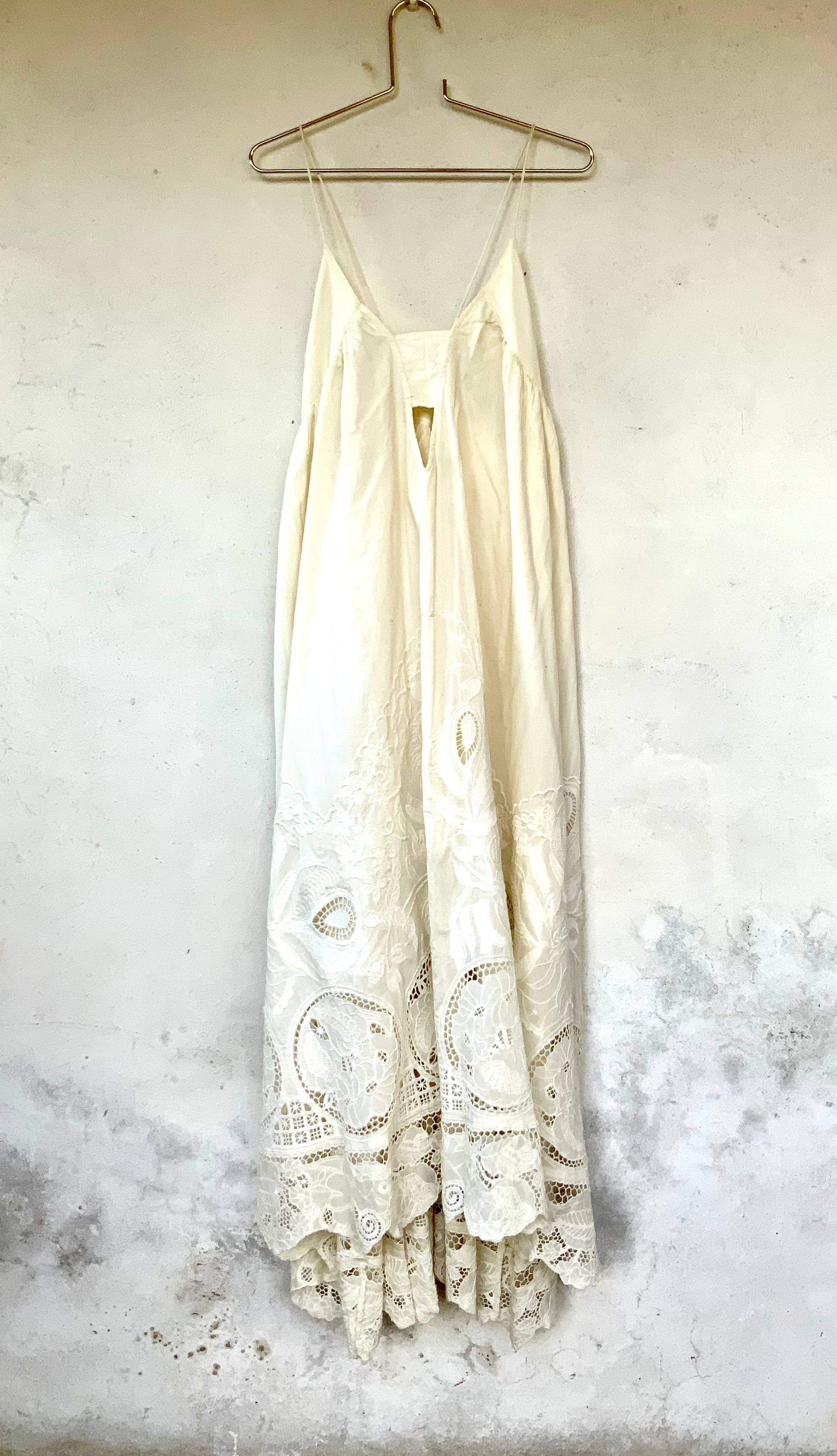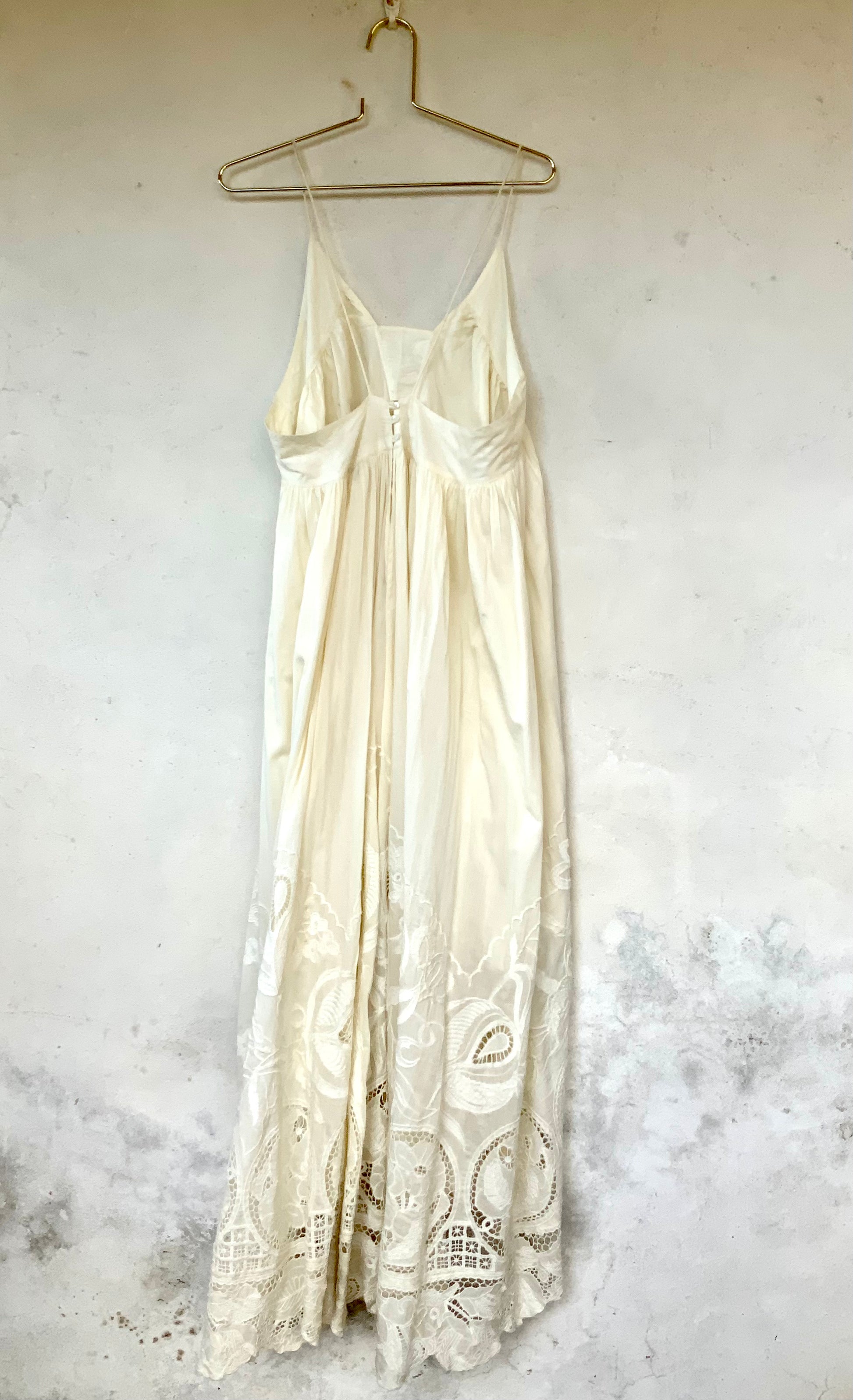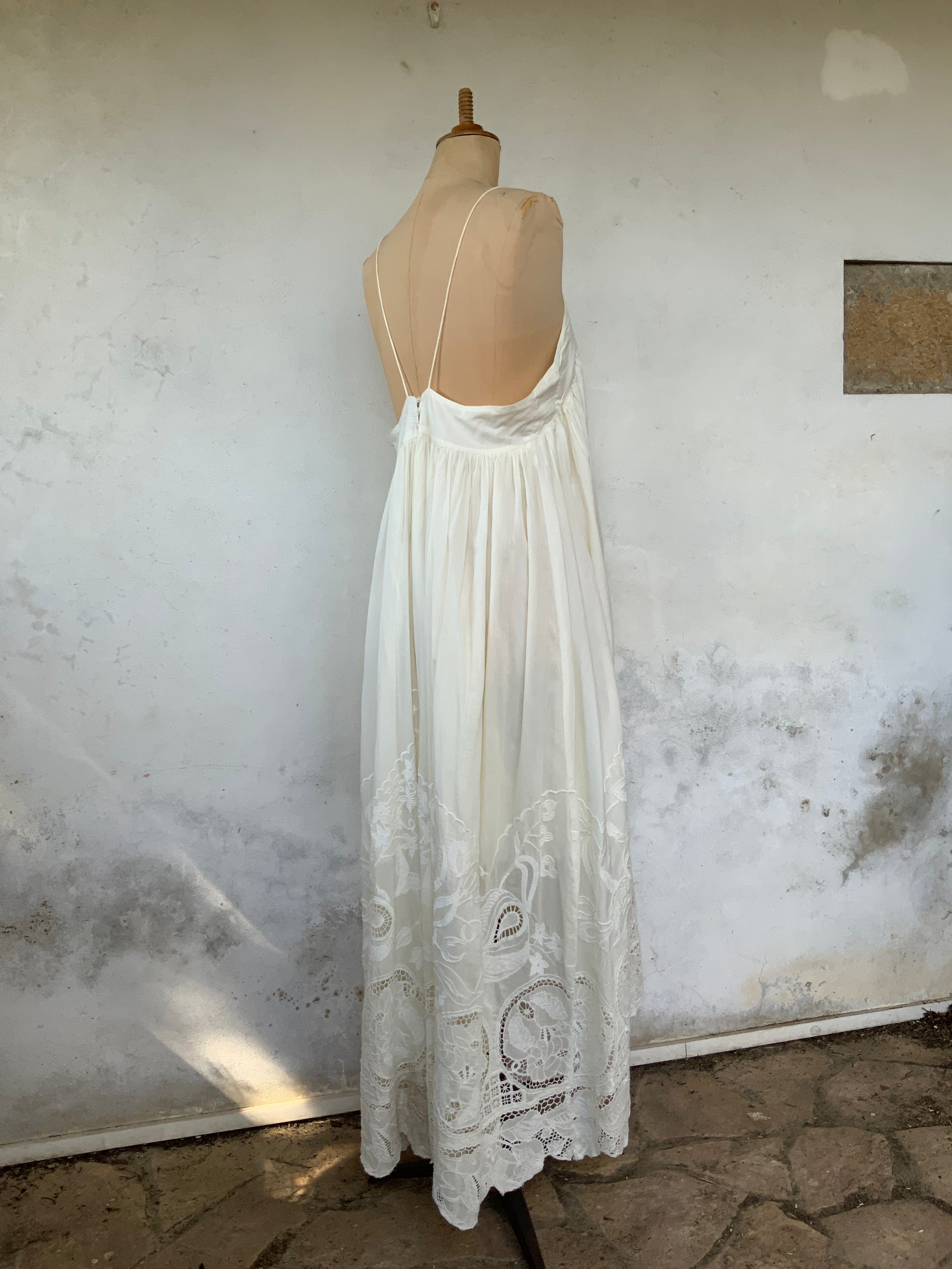Vintage années 2000 , pour cette maxi robe longue , en dentelle de coton ivoire .