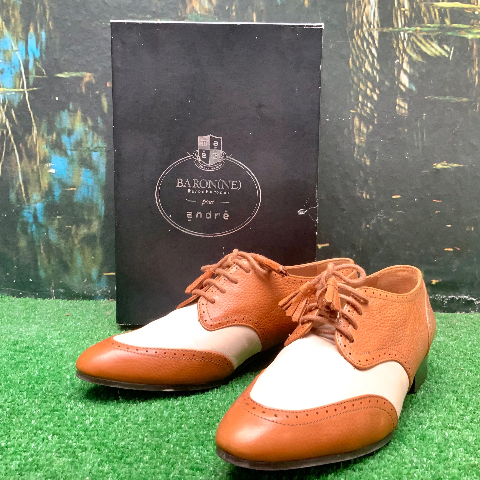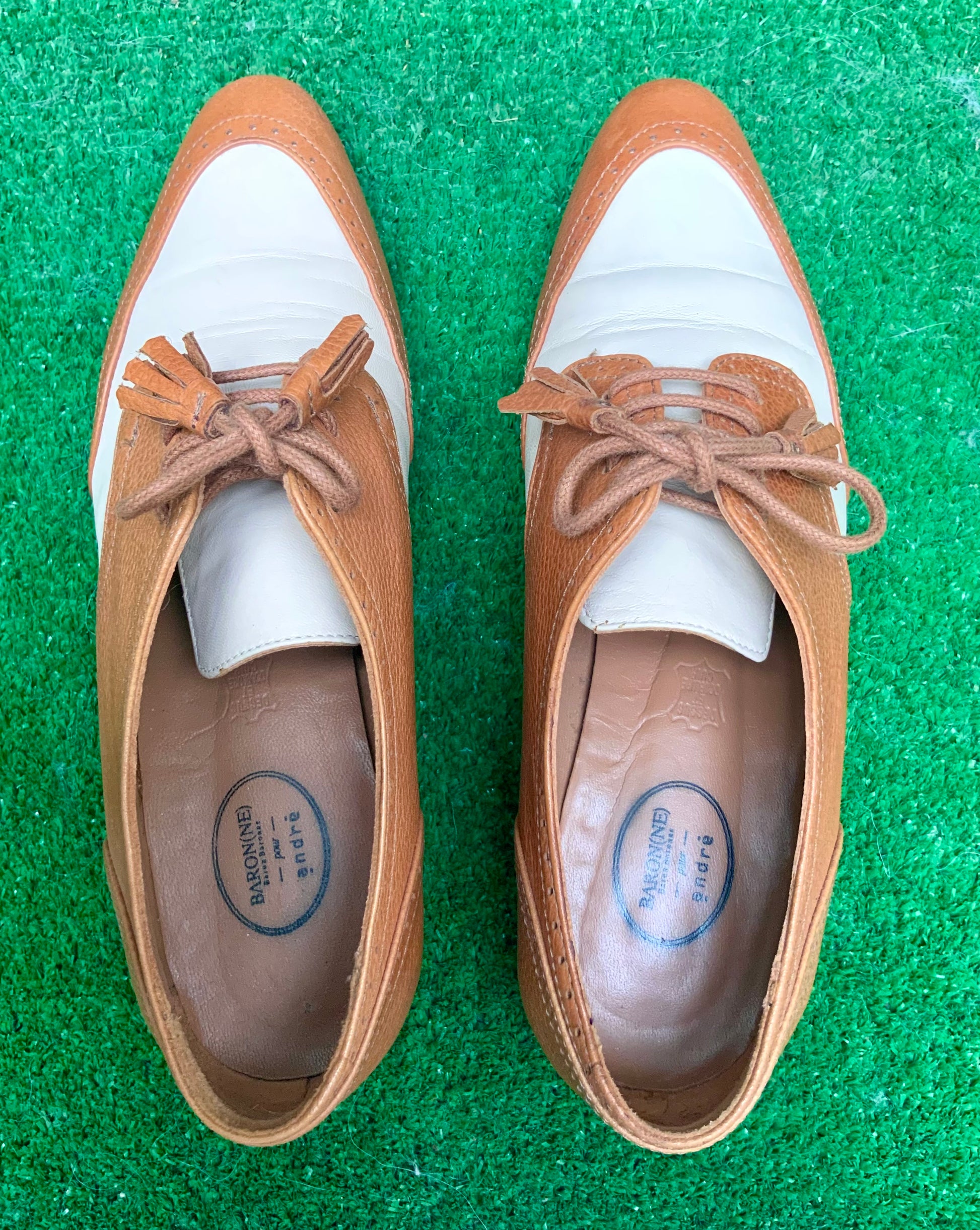 Derby’s en cuir bicolore écru et camel Baron(ne) pour André